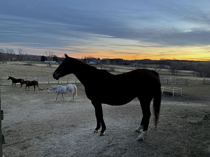 As Cyndie was about to serve the horses their dinner last night around the time the sun was setting, the tranquility was disrupted by the sound of fireworks exploding.