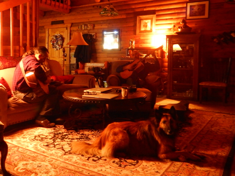 We enjoyed a treasure of an evening, laughing in the kitchen while preparing food, luxuriating in sitting down to eat the food, and then hanging by the fireplace to play cards, eat ice cream, play guitars, and thrill in the joy of simply being together.
