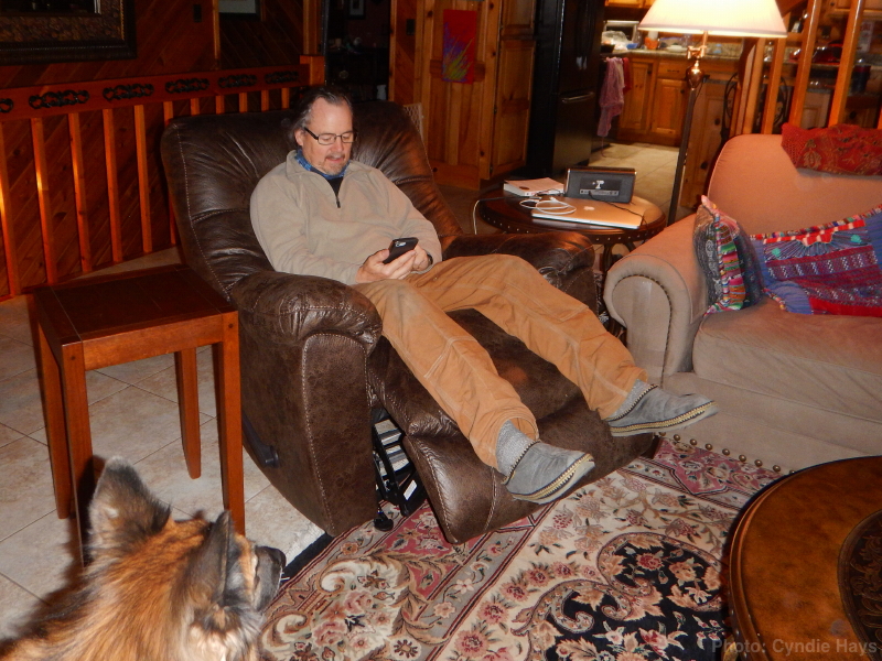 Cyndie took me shopping for a new recliner and we came home with a new perch to kick back in while watching the fire. Guess what I did every chance I got for the rest of the weekend?