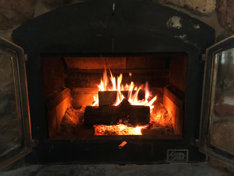 Two logs. That’s as complicated as this task was. I opened the fireplace doors and tossed the first one on the remnants of glowing coals. On contact, a red-hot ember popped out and landed right in front of me on the stone hearth.