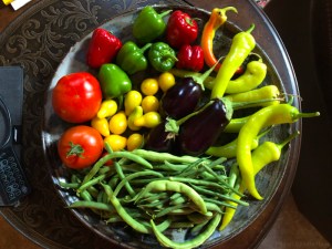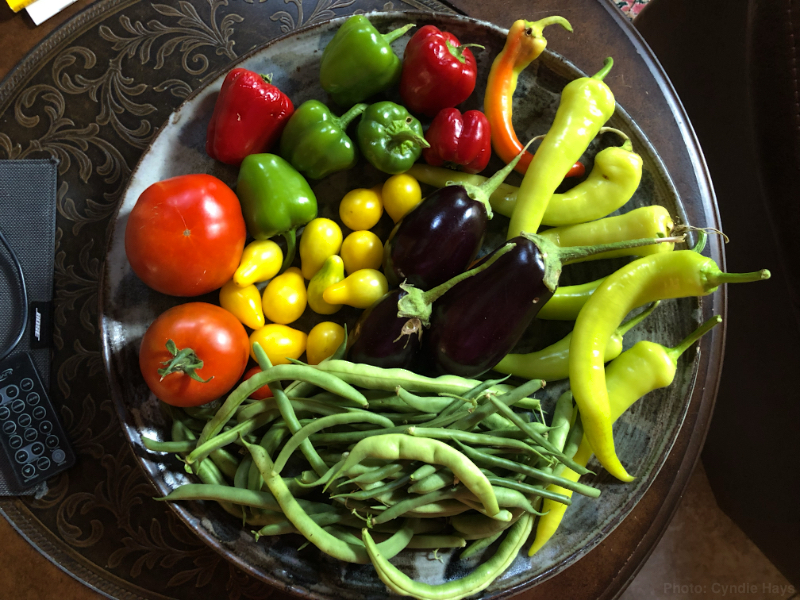 The last stop for Cyndie on the tour of our property was her garden. She came in with quite a bounty of a photogenic variety of vegetables.