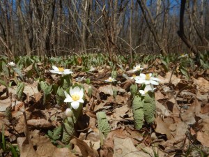 For years, we have longed to establish a colony of trillium in the woods closest to our house by transplanting them from the forest on the land of Cyndie’s lake place up in Hayward, WI. The very satisfying success we have achieved up to this point has been limited to the plants surviving the stress of getting dug up and driven hours away. Some, but not all, have even produced the ultimate reward of the classic blossom.
