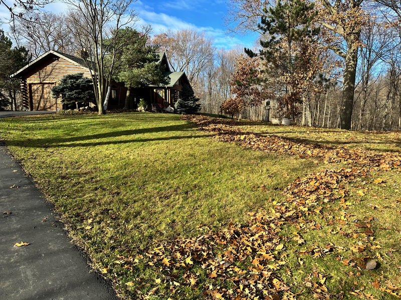 Clearing the mat of leaves off the lawn grass offers a wonderful visual reward. Bring on the snow.