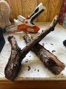In one such spot, I noticed a trunk of grapevine that was thicker than my wrist. We have a general policy of favoring our trees over opportunistic vines but some of these in the center of thick growth have evaded our notice long enough to become monstrosities. The problem is that the rare times I discover such huge vines I don’t have the tools with me to do anything about it.