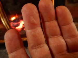 I have no idea how I succeeded in getting burned in two places on that finger, as the ember was about the size of a single blister. Somehow my reflex reaction, after I was able to shift my weight back off that hand, must have caused a double contact.