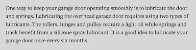 In a humorous message exchange yesterday with my friend, Rich Gordon, I thought he had me mistaken for someone else. He had asked “What’s the best stuff to use to lubricate my garage door springs? I saw you had a repairman over recently.”