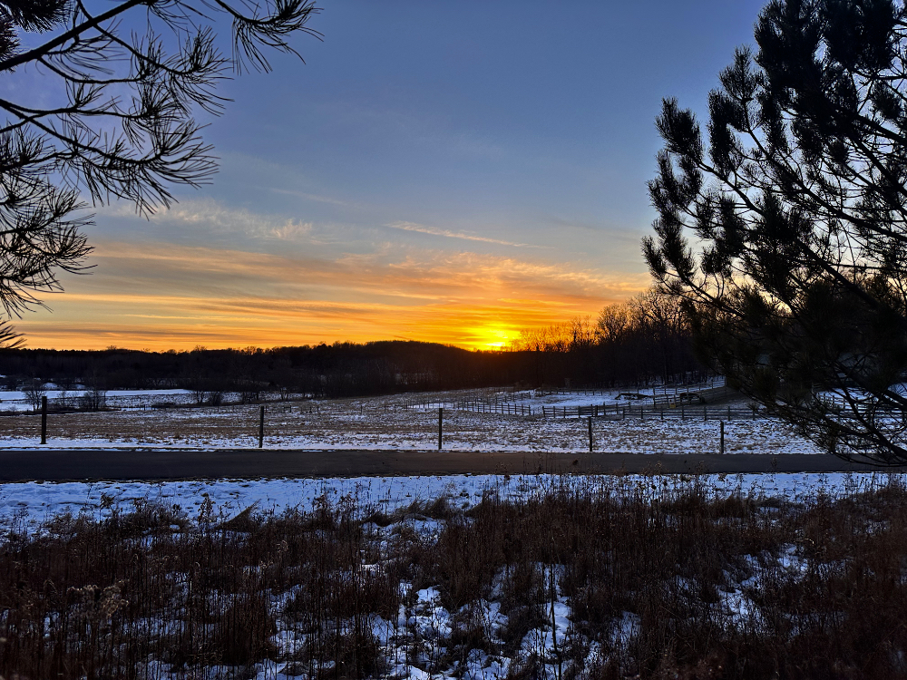 Made it to the lake place yesterday afternoon for a few days of solo holiday. Without doing much in the way of additional cleanup of snow from Wednesday, in the morning I walked Asher with Cyndie, and we did horse chores together. The scenery was pretty striking, with the bright morning sunshine bouncing off the oodles of snow that had fallen.