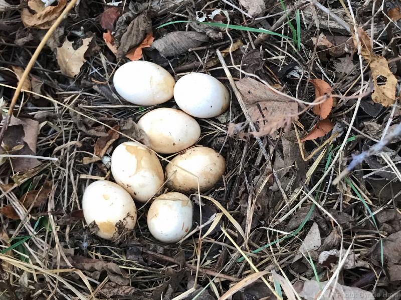 When I got home and Cyndie shared some pictures of the scene with me, the thing that stood out more than the eggs was the appearance of poison ivy leaves around the spot.