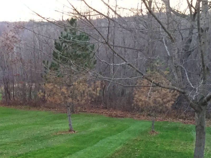 Yesterday, Cyndie got a local tree service to send someone out to assess what might be continuing to attack our long-needle pine trees. I raced home through the poor visibility of endless road-spray, a half hour early, in hopes of being here for the visit.