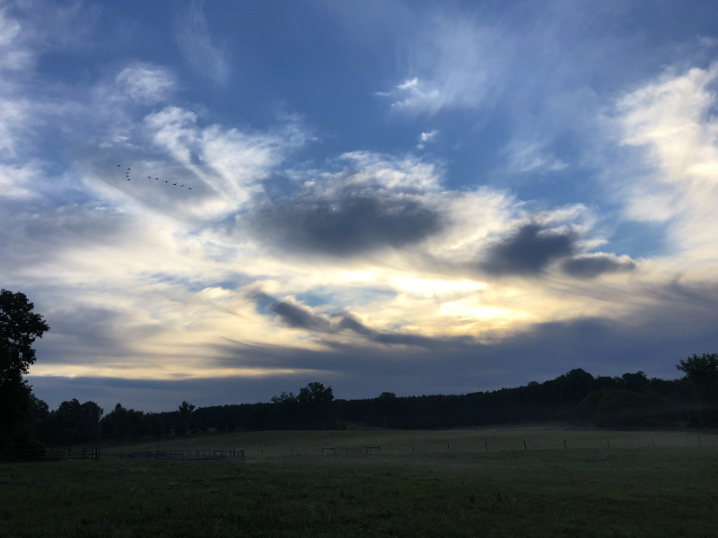 A vocal flock of geese flying in the classic “V” formation punctuated the underlying obvious sense that we are in the season that follows summer.