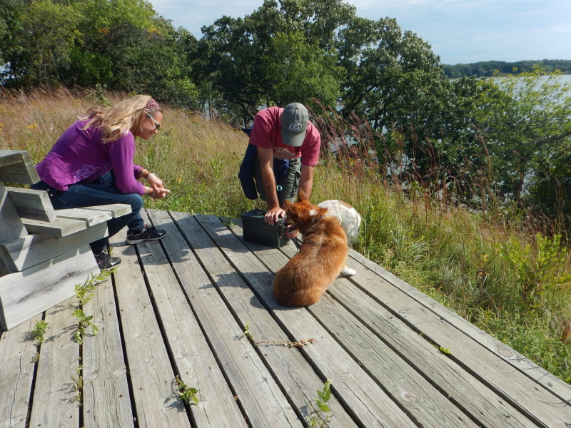 The highlight of the day has to be the feast we enjoyed for dinner. Jeff brought fresh salmon and halibut caught on a fishing trip the week before. Steve grilled the fish and some brats and burgers under the close supervision of a couple of interested parties, while others tended the corn on the cob and side dishes.