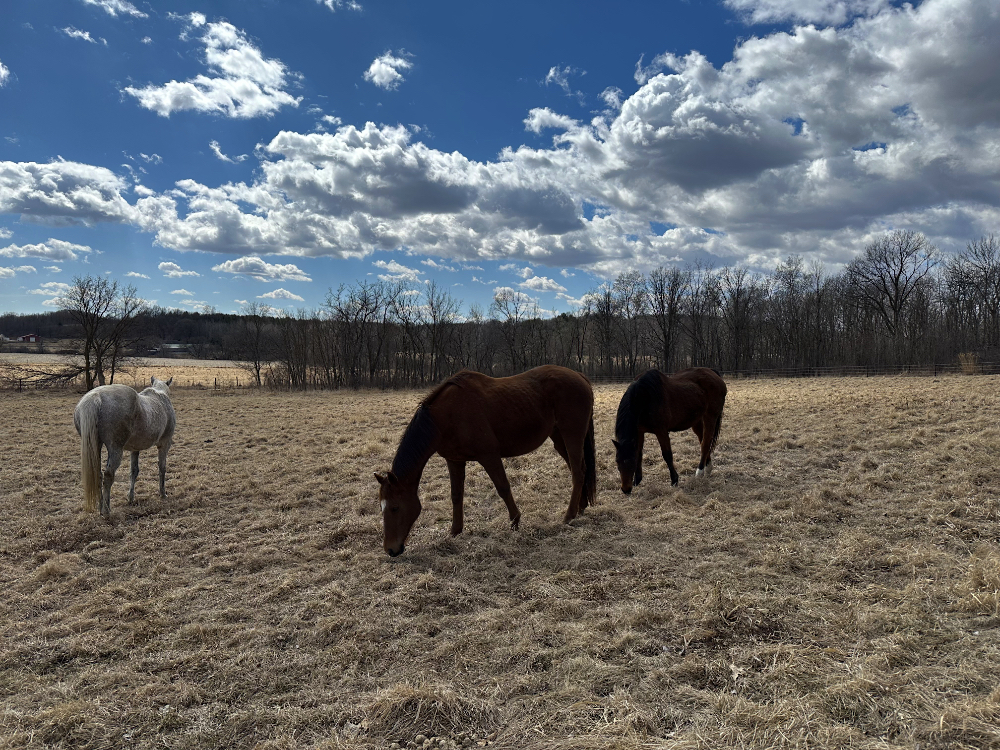 The horses came over to see what was up and lingered in the vicinity for a short while, grazing the dead grass and any new sprouts beneath that might be showing up.