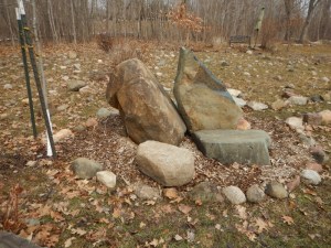 Do you remember the triumphant moment back in September of 2017, when Cyndie’s brothers and cousins helped me place a heavy stone atop the two boulders in the center of our labyrinth? Elysa captured the accomplishment in pictures.