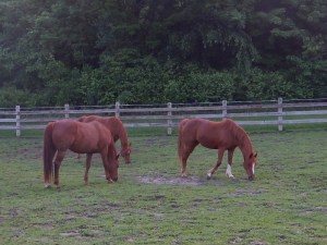 The sounds of their contented chewing and ripping bites of grass have a soothing quality to them. The evening air was cooling nicely and the endearing sounds of nature surrounding us, combined with the munching horses as daylight faded, provided everything we wished for in terms of clearing our minds.