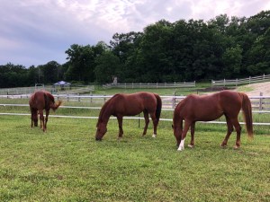 A short time later I noticed Mix rolling around on her back in the grass. I wasn’t around when they returned from the field but the next time I looked in on them, they were all standing around together in the small paddock.