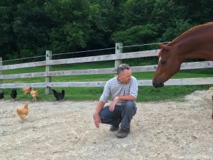 After we returned to the paddock, I crouched down to visit with the chickens, but it was Hunter and Cayenne who moved in to love me up.