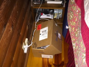 Full disclosure: The clutter isn’t busted yet. To save time, I moved the bags into a box, instead of processing the treasure of collectibles contained within. However, in the interest of not totally giving up on the ultimate goal, I set the box –too full to even close– on the floor beside my bed where it would be out of sight to the casual viewer, but where I would trip over it every day until I deal with it.