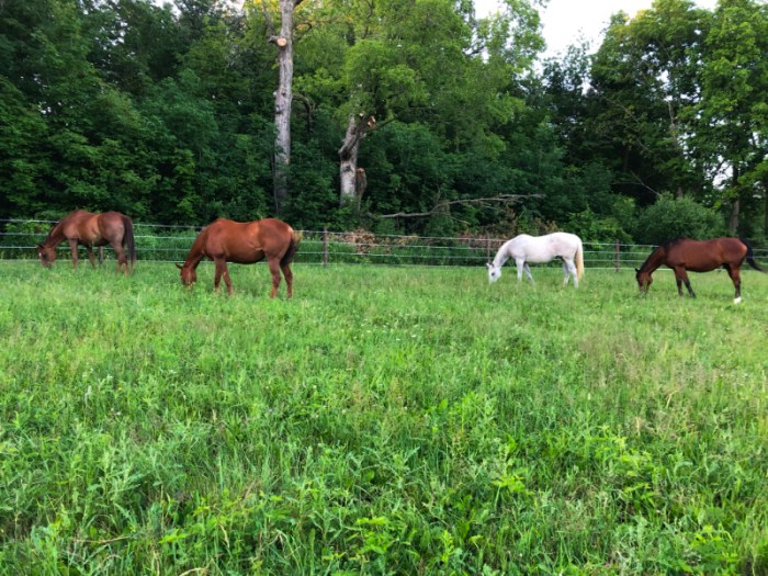 It gets a little nerve-wracking owning large animals when grazing land begins to dry up. So far, I’d say we have been pretty lucky. Our hay shed is stacked high with bales and our fields have plenty of growth left from May that the horses have only lightly grazed.