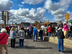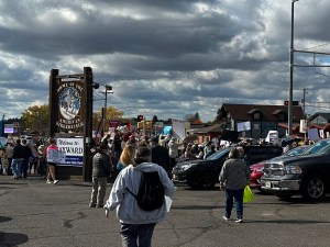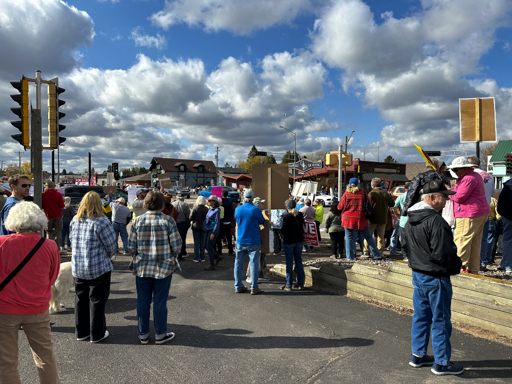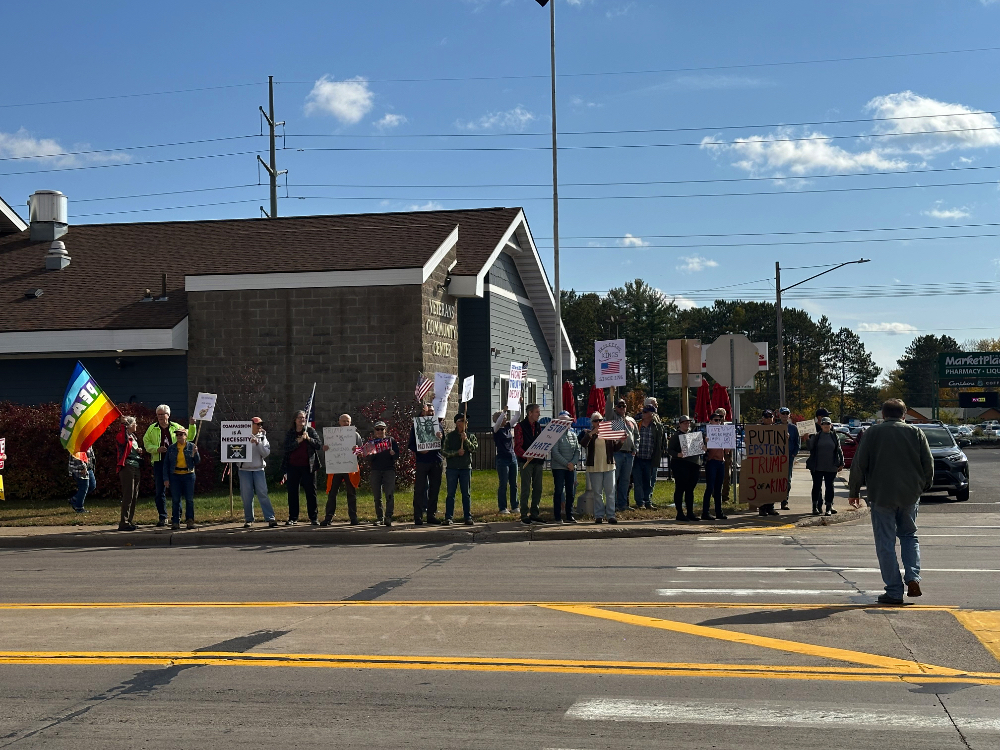 We are only up at our lake place in Hayward, WI, for the weekend, and didn’t have a lot of information about the local plans for No Kings Day. The pin on the location map put it at what I thought was an odd intersection of highways 27 and 63.