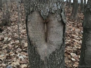 What might the message be from this tree with an old wound that it is growing around in the shape of a heart?