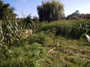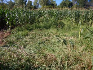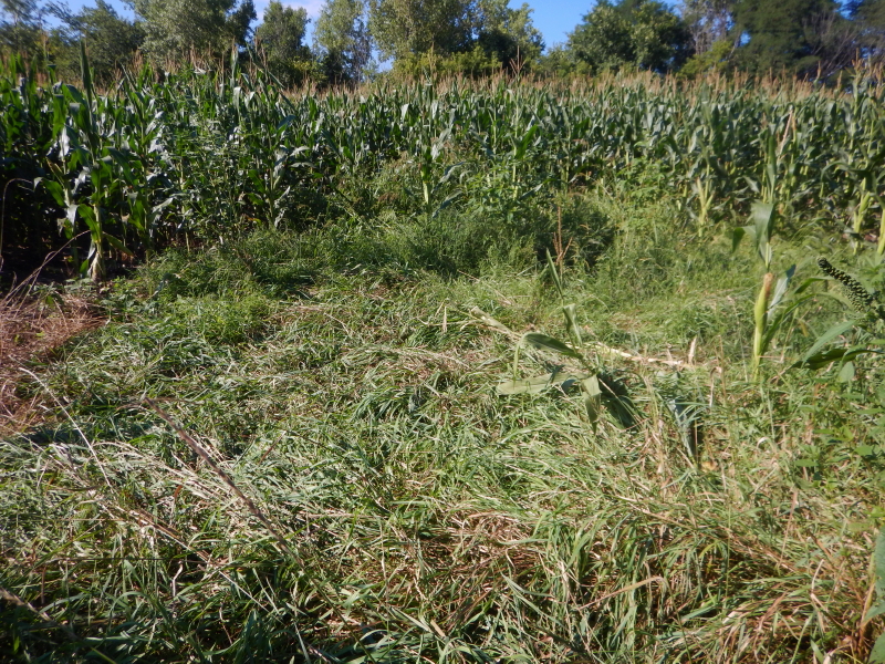 In fact, he did, and it has a wonderful patch of grass, below which are some weeds taller than his corn. I had not walked far enough up into the field to notice the full scope of what was going on. Had I looked just beside my focus of the current source of sandy top soil, I might have noticed.