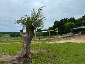 Willow trees like a lot of water, so all this rain is giving the dying tree in the paddock a boost. There’s enough new growth sprouting out of what remains of that tree to provide a little shade for the horses again.