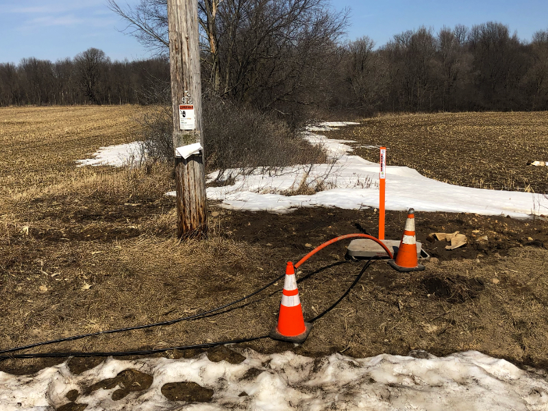 They were hanging fiber optic cable on our electric poles. By the end of the day, I noticed a drop from the pole on the other side of our driveway, coiled up and ready for connection to a line to be buried alongside our electric supply up to the house.