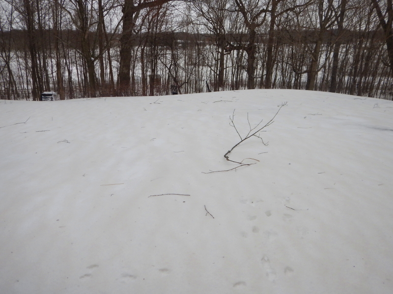 Coming out of the woods on our walk, Delilah and I stopped to watch the spectacle of dancing “snow-devils” gyrating in the distance across the hayfield where there was no shelter from the hurling wind.