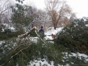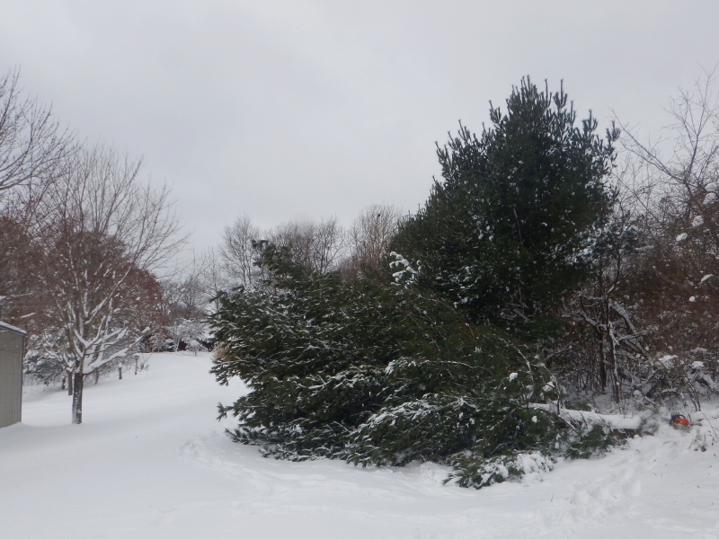 This is becoming an all too frequent unwelcome occurrence. We had another tree succumb to high winds. This time it wasn’t in the woods, but right along the driveway during last Wednesday’s storm. When the look of winter arrived with a blast of 8 inches of heavy, wet blowing snow, it forced us into the double duty of cutting up the big pine across the driveway before I could plow.