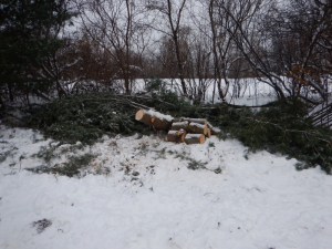 I offered her the alternative option of saving boughs for making a wreath or other decorative holiday arrangements. That met with her approval. No sense having all that wonderful pine scent going to waste.