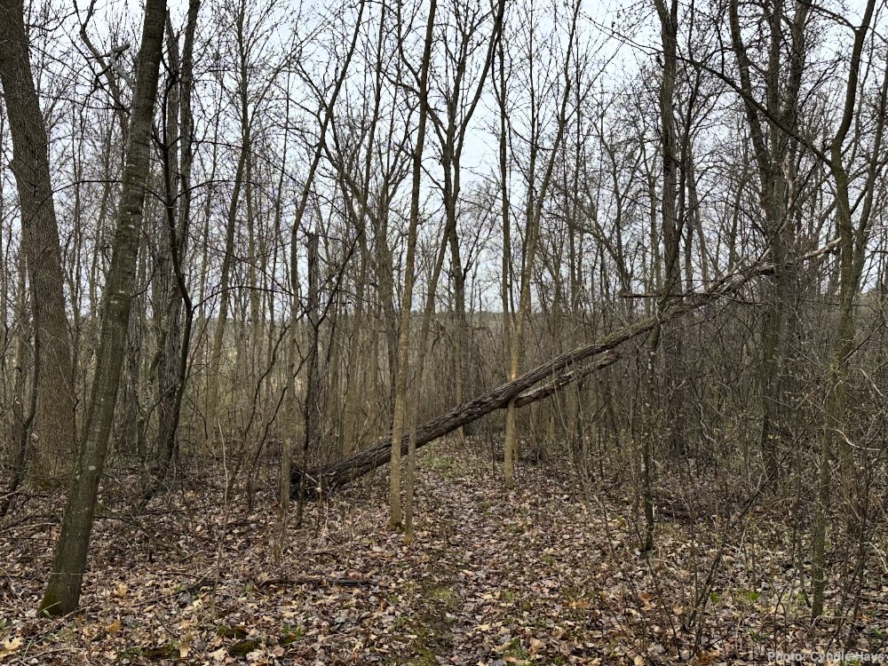 In my post on Sunday, I mentioned it was windy over the weekend. Yesterday morning, I found a small dead tree had tipped across one of our trails. Later in the afternoon, we discovered a larger tree had busted off on a different trail. High winds tend to bring down more than just small branches around our property.