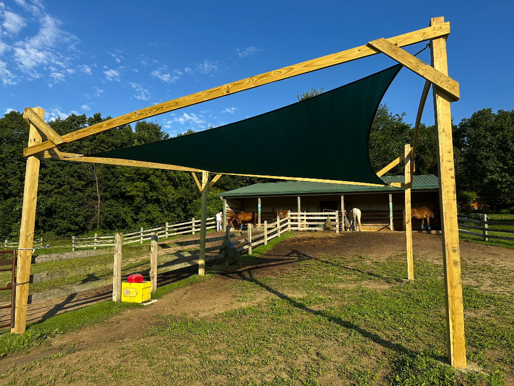 I have been swayed away from being that obsessive about it by hearing from other people who have shade sails and paying attention to sails that exist in commercial settings. Our farrier told us she NEVER takes her shade sail down. In winter, she just knocks the accumulated snow off it to keep it from getting stretched out. Of course, if I choose to go that route, I would need to be home during snow events.