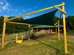 We are particularly thrilled with the lack of any negative reaction from the horses to this flapping new distraction in their midst.