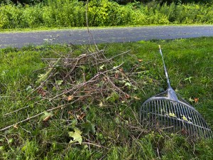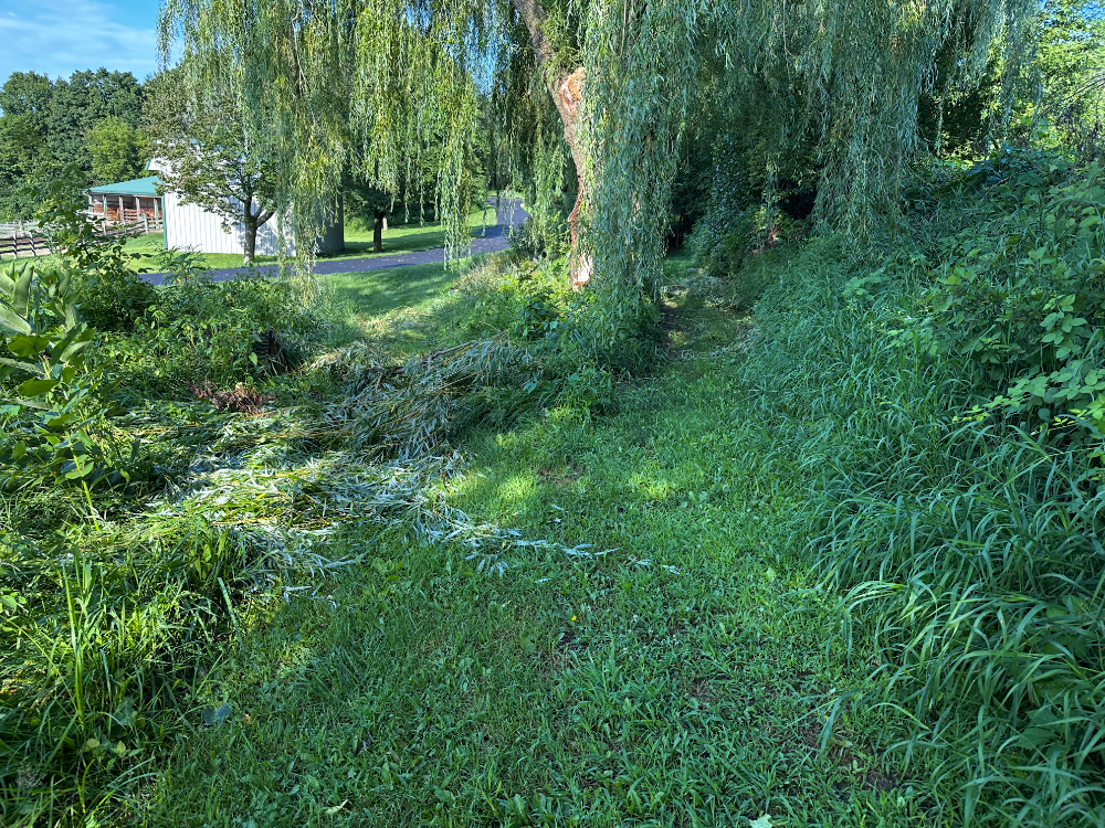 When I got around to mowing, it required a lot of extra cleanup effort around trees.