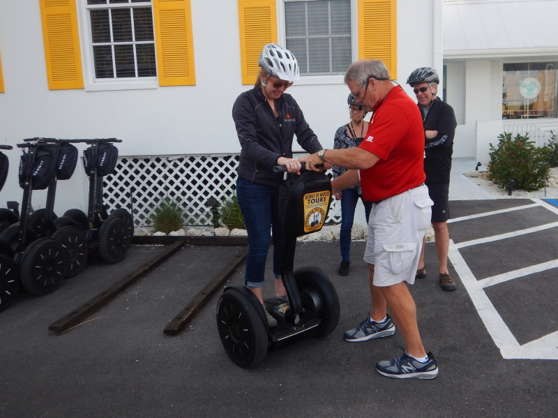 Barb & Mike got a crash course on piloting a Segway (no crashing involved)