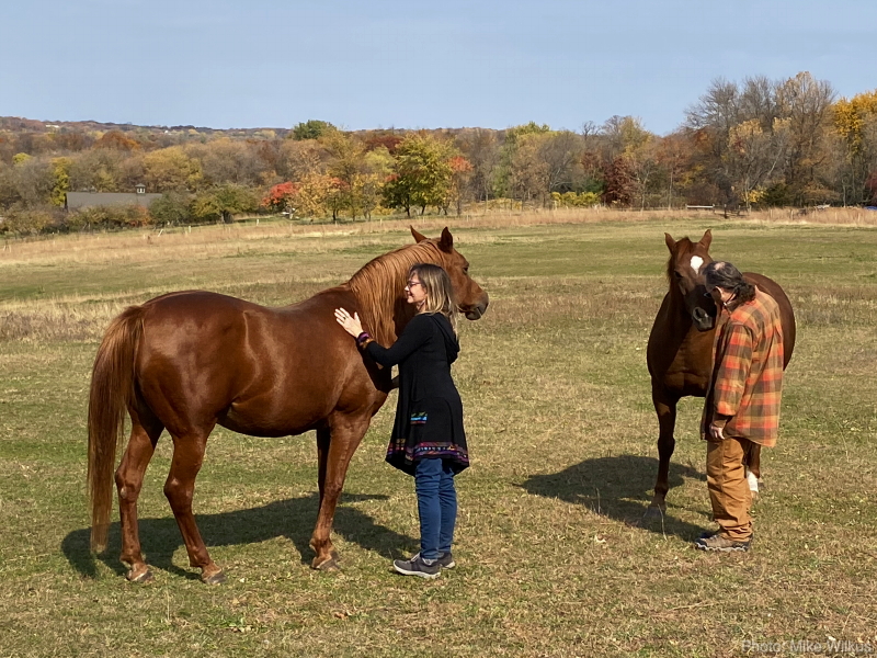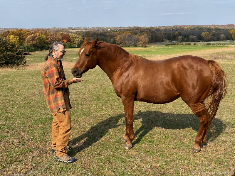 It wasn’t until we were on the road yesterday, driving to Mound for a visit with Barb and Mike Wilkus, that I mentioned we would be in the vicinity of our horses. The plan was to go for a hike and then have lunch on their deck.