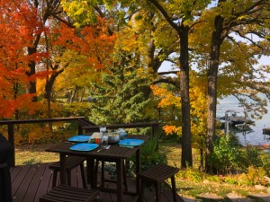 Julian and Allison also brought up custom-made cornhole boards that were a groomsman’s gift from a friend whose wedding Julian was in. With a fire in the firepit and pork chops on the grill, the bag toss game fit nicely as further entertainment up and out of the chilly lake.