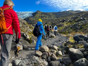 We had just ridden in a bus to the point where we needed to start hiking. With a kick of her boot into the gravel, the guide demonstrated how the glacier pushes the rubble up in a ridge which then becomes a lake as the melting happens.