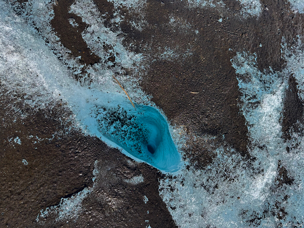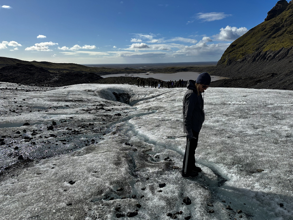 Soon, we were learning about glacier moulins where a weak spot in the ice becomes a pool that drains over time.