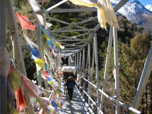 I find such expedition movies fun for the brief few minute glimpses they almost always include of the flight to Lukla, the swinging bridges, the rocky trails through rhododendron trees, the shrines, prayer flags, and initial views of Everest that are all the very places I walked.