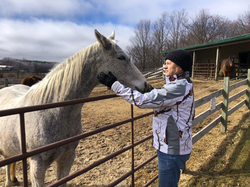 Cyndie’s brother, Steve, paid me a visit while his sister is in Florida. We stopped by a paddock gate to visit with the horses and found several of them showing interest in allowing us to give them scratches. Swings stopped by first. She stood for a bit with her nose just at the gate, breathing in our scent. I turned away for a moment and when I looked back, she had stepped forward and was reaching her head completely over the gate.