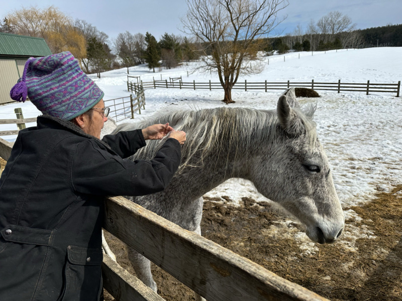 Gives me just enough strength to walk Asher to his heart’s delight and keep the horses from total neglect. They are making do with the snowless conditions and warm sunshine of late.