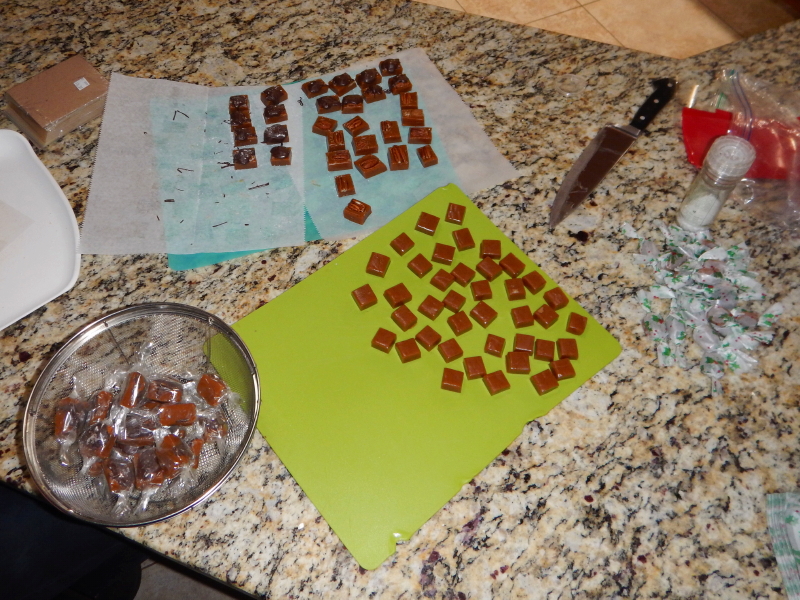 I suppose that fraction of a caramel added a few grams of sugar to my daily total. I probably worked that off in the calories I burned working so diligently on cutting and wrapping.