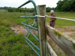 Over the phone, we strategized with Pam and John to guide them to materials to temporarily secure the gate and assure them all was fine, even as Cyndie and I marveled over the outrageousness of what we were seeing and the incident we were imagining had happened. We also had them close that gate by the road as an additional precaution. The farmer can open it when he finally arrives.