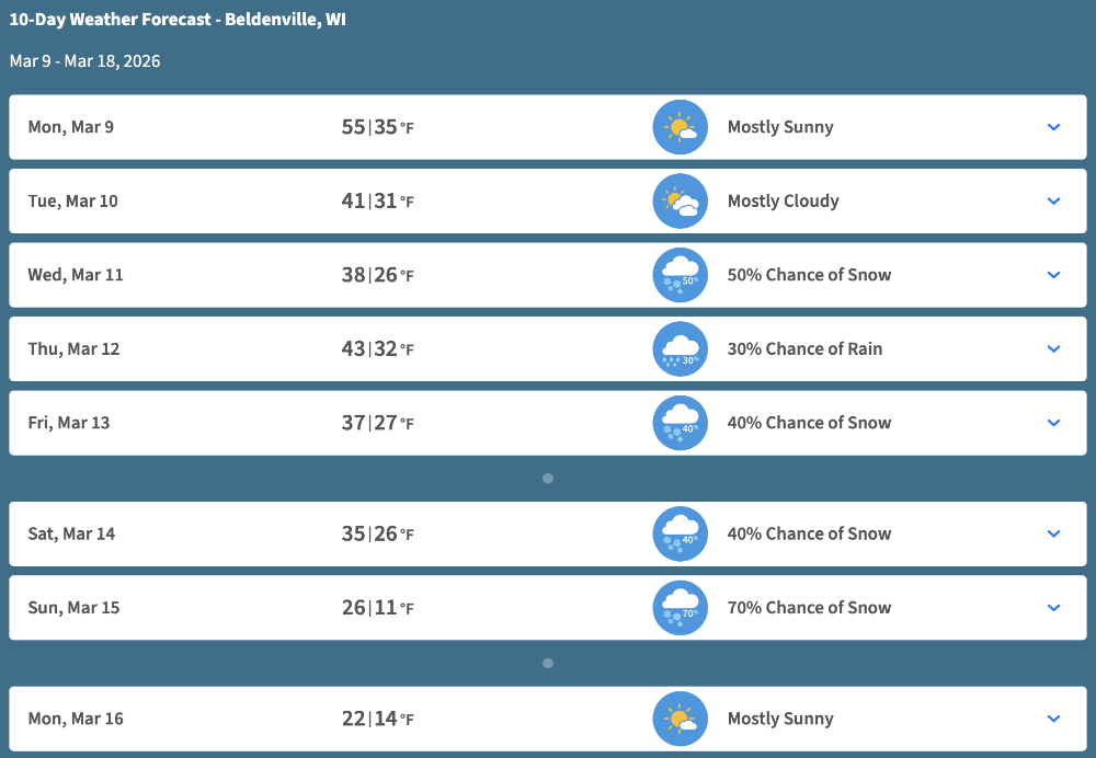 The most significant sign that we are making progress on breaking loose from the icy grip of winter is that I was able to wrench the large barn doors free and slide them open yesterday afternoon. That’s just in time for the next delivery of feed bags scheduled for today.