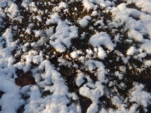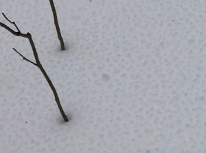 I wasn’t aware that the overnight precipitation eventually turned to rain which froze into a half-inch glazed crust on top. To push the front storm door open required enough force to shatter that crust covering the snow on the front steps.