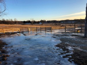 This morning, it is freezing rain that makes just reaching our animals limb-threateningly risky, let alone extremely difficult to tend to their needs.