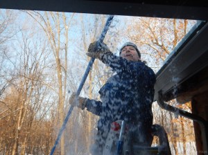 Shoveling it off the deck was made appropriately more laborious by the chunks of ice slabs mixed in with the snow.