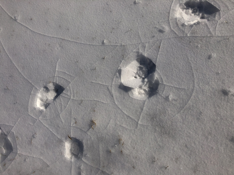 By the time I went out for the afternoon feeding, the edges of that puddle were beginning to disintegrate by sublimation. If we continue to experience a prolonged dry spell, it may just disappear without ever melting.