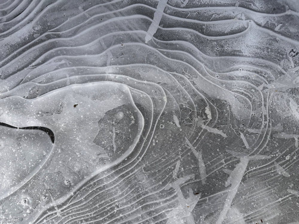 When Delilah and I were surveying the pasture for hazardous ice on Saturday, we instead found artistic ice formations.